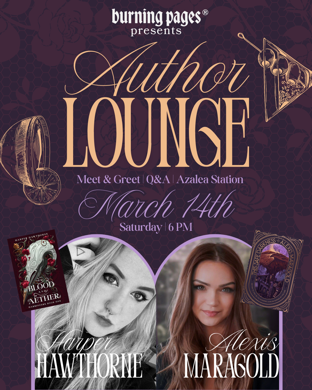 Alexis Maragold will be talking all about her brand new release, This Safe Darkness (2/17), and Harper Hawthorne will be sharing her debut, Of Blood and Aether, as well as a teaser for her upcoming release in the Harbingers Series.